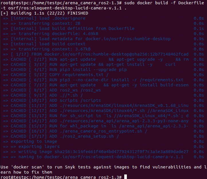 $ sudo docker build -f Dockerfile -t osrf/ros:eloquent-desktop-lucid-camera-v.1.0 .