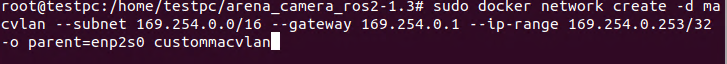 $ sudo docker network create -d macvlan --subnet 169.254.0.0/16 --gateway 169.254.0.1 --ip-range 169.254.0.253/32 -o parent=enp2s0 custommacvlan