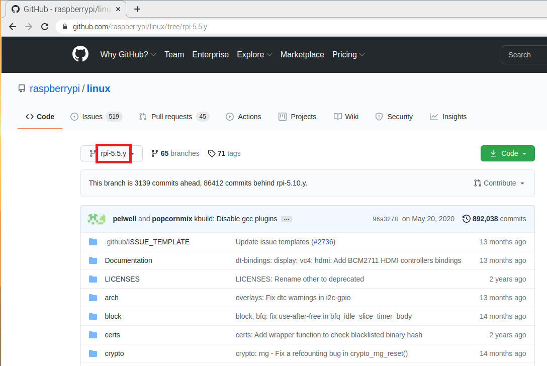 git clone --depth=1 -b rpi-5.5.y https://github.com/raspberrypi/linux.git
