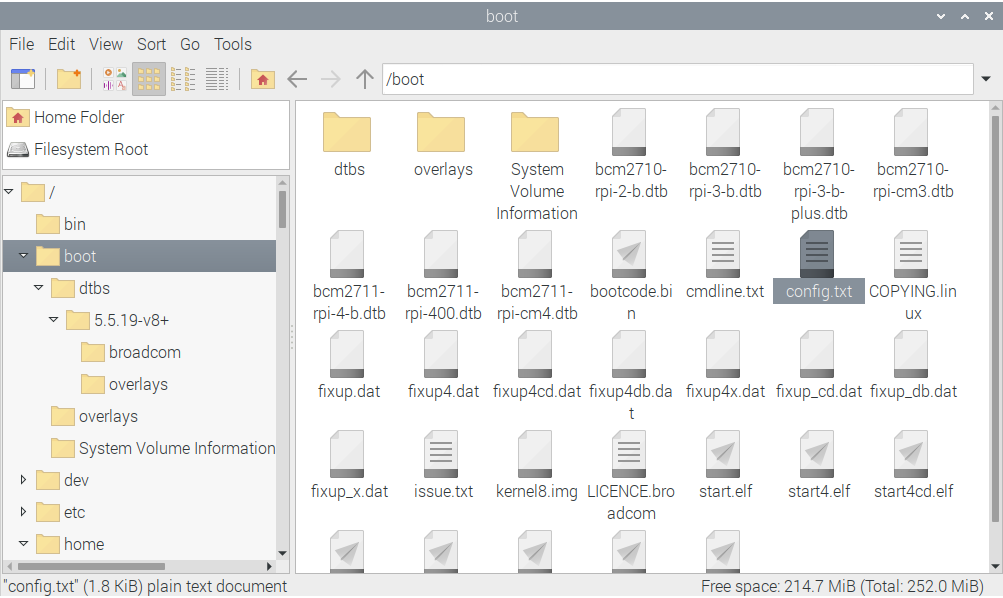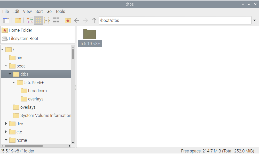 In File Manager, go to the path /boot/dtbs and note the version number. In this case it is 5.5.19-v8+.