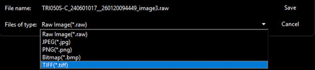 • File Format: Available file formats are TIFF, PNG, JPEG, RAW, and BMP.