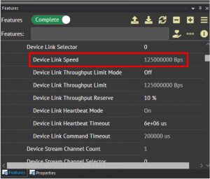 Once you have applied the setting changes, power cycle your camera and check the Device Link Speed node in ArenaView.