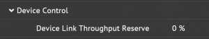 By setting Device Link Throughput Reserve to 0%, there is no bandwidth allocated for packet resend which is the equivalent to turning off packet resend functionality.