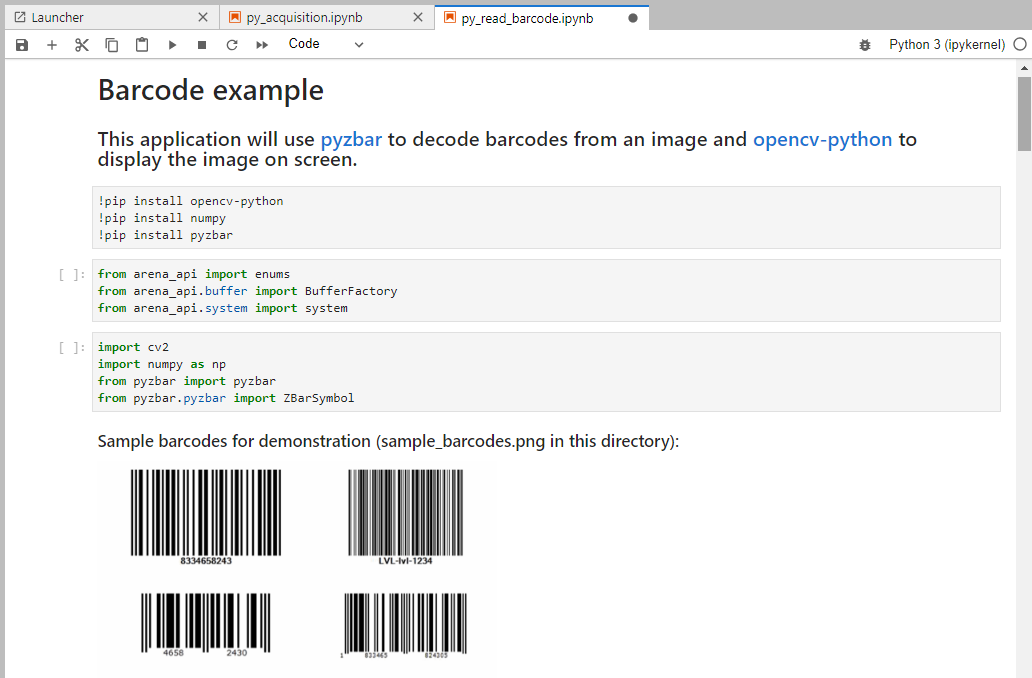 The Jupyter Lab environment will let you write Arena Python code to control camera features and quickly integrate image analysis and processing.